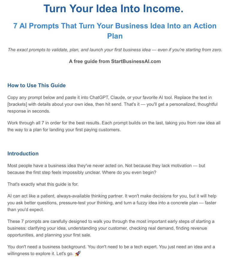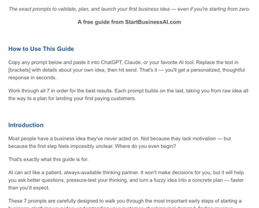👉 If you’re serious about starting your business, get the full 50 AI prompts here: